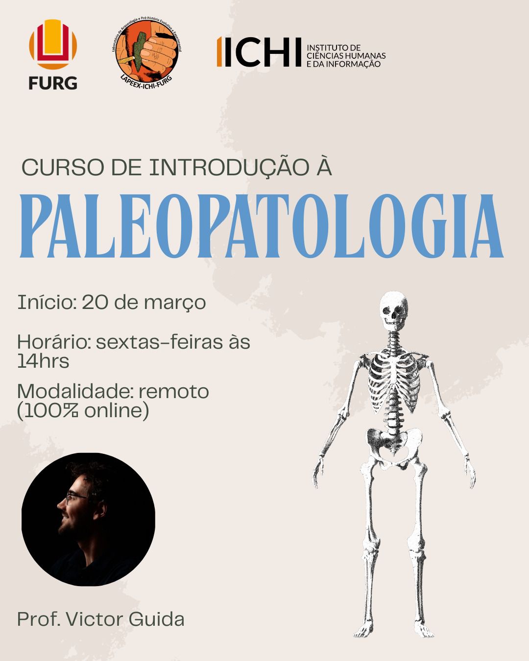 O curso será ministrado pelo Dr. Victor Guida (mestre e doutor em arqueologia pelo Museu Nacional da UFRJ) e coordenado pelo Prof. Dr. João Carlos Moreno (coordenador do LAPEEX).